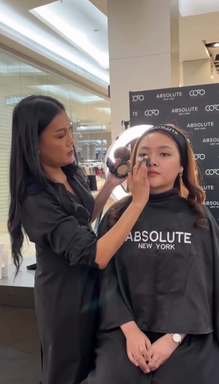 Demo makeup tersebut menampilkan teknik aplikasi cushion untuk menciptakan complexion yang tampak halus, merata, dan menyatu dengan kulit wajah. Proses pengaplikasian diperlihatkan secara step-by-step, mulai dari persiapan kulit hingga finishing, sehingga memberikan referensi praktis mengenai cara mendapatkan hasil yang lebih seamless dan nyaman digunakan sepanjang hari. Selain itu, produk Absolute New York juga ditunjukkan untuk melengkapi proses demo makeup ini.